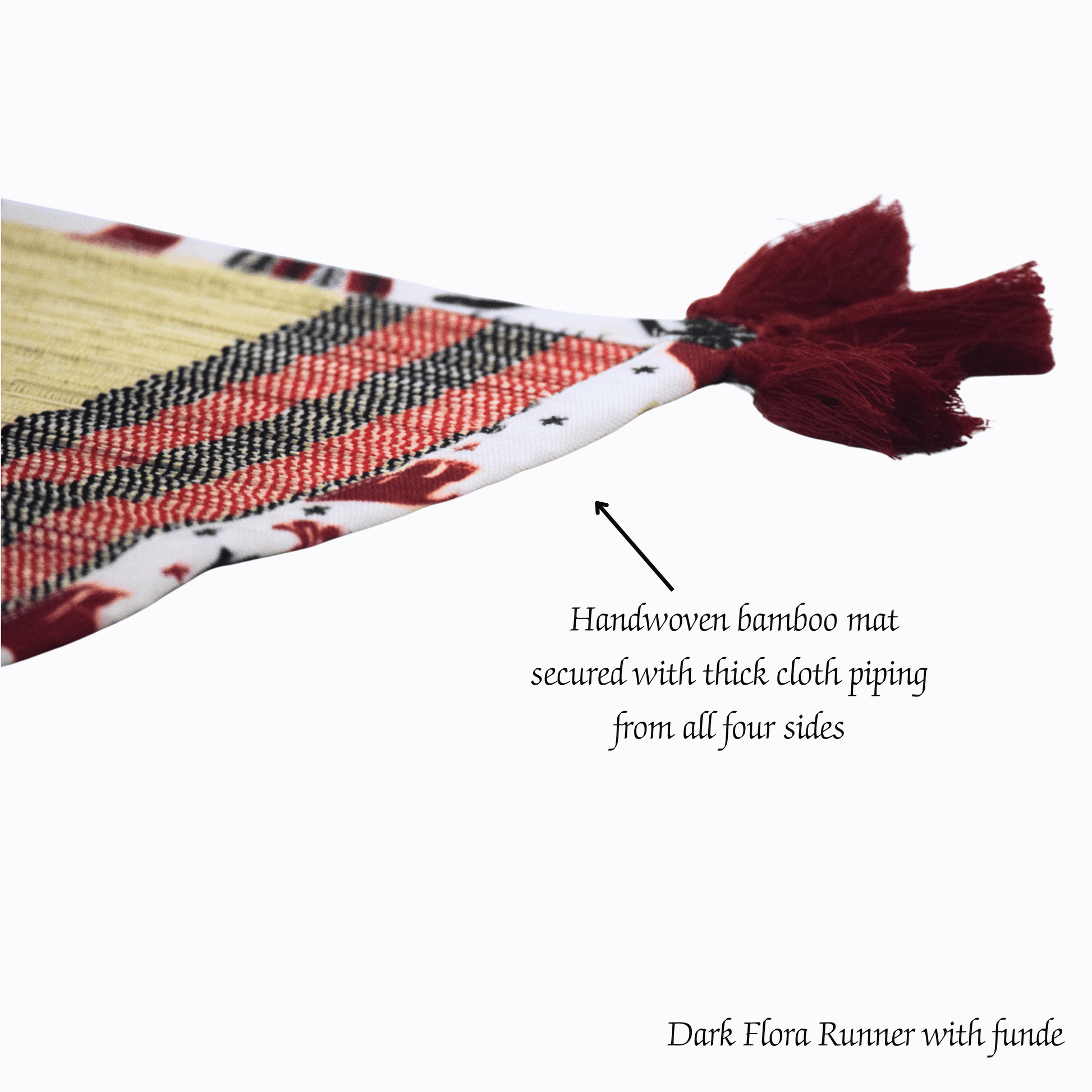 After Wait | Bamboo Table Runner – Elephant Print Canvas Border with Red Funde