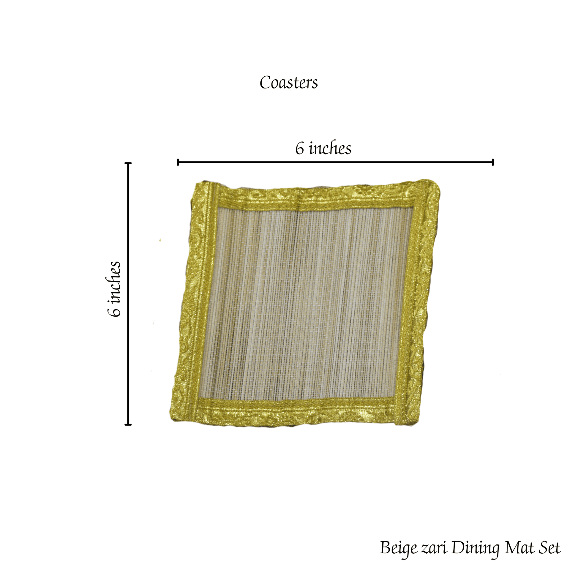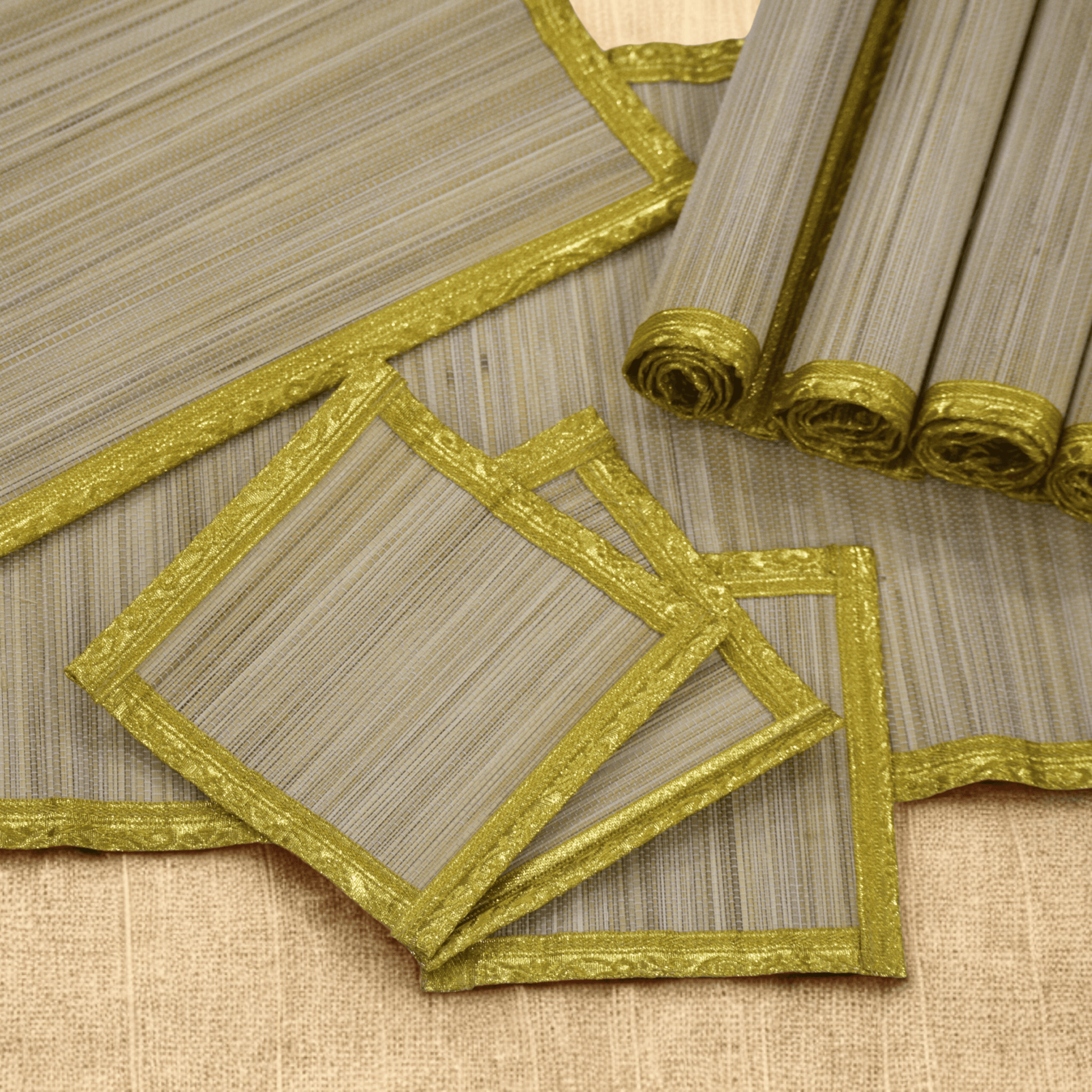 Zari Series | Bamboo Coasters (Set of 6) - Beige Luxe with Sand Gold