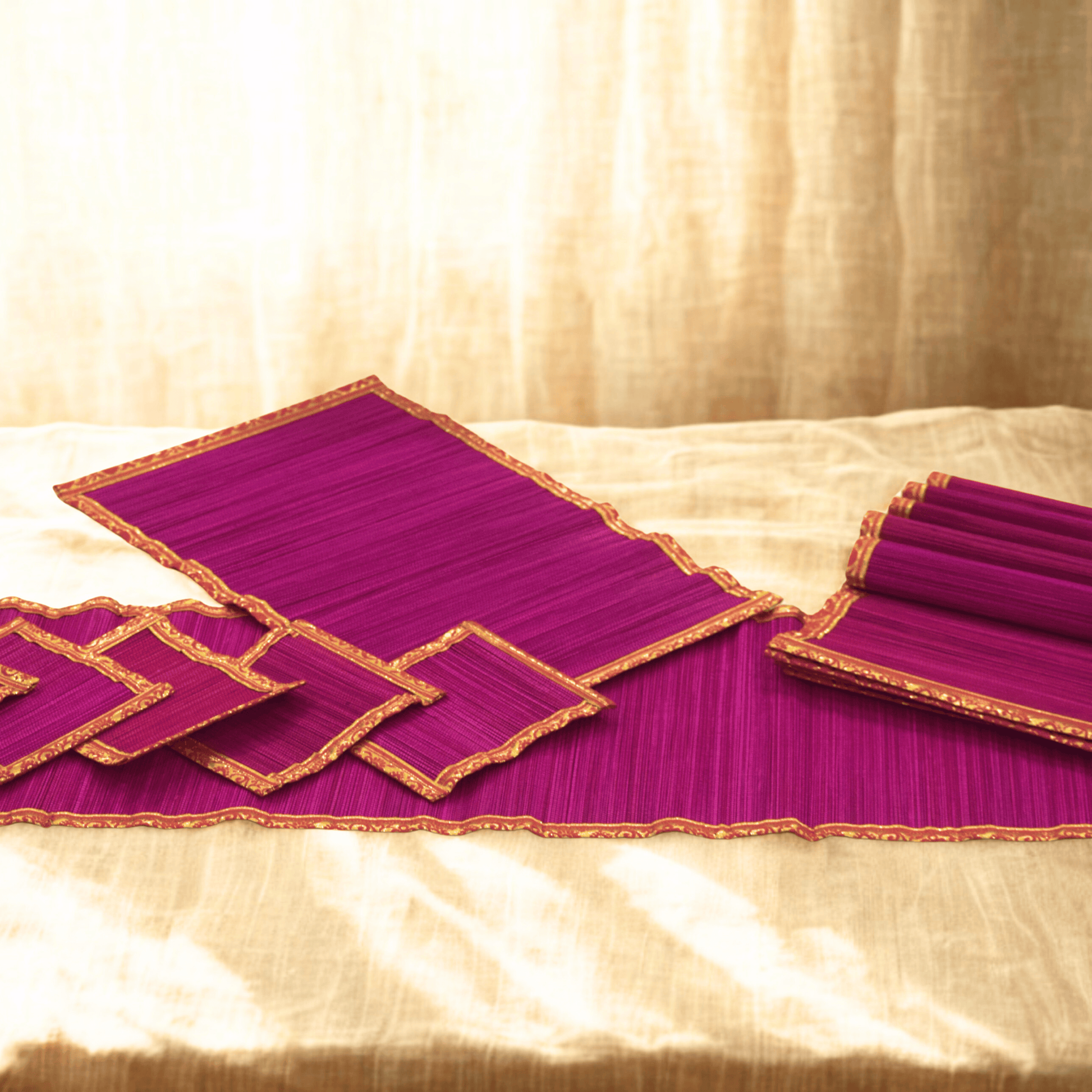 Zari Series | Bamboo Table Runner - Pink with Rose Zari Finish