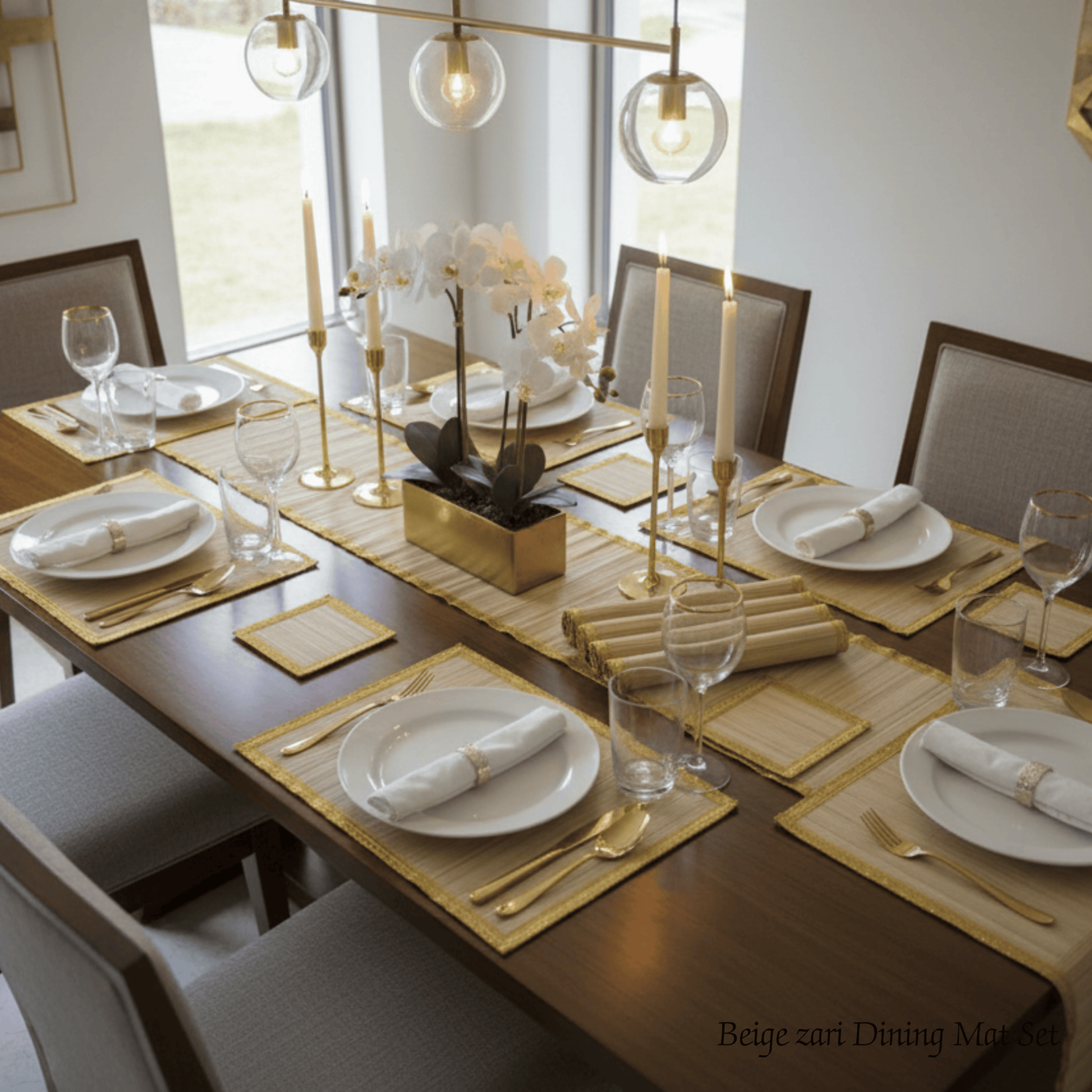 Zari Series | Bamboo Table Runner with Placemat - Beige Luxe with Sand Gold