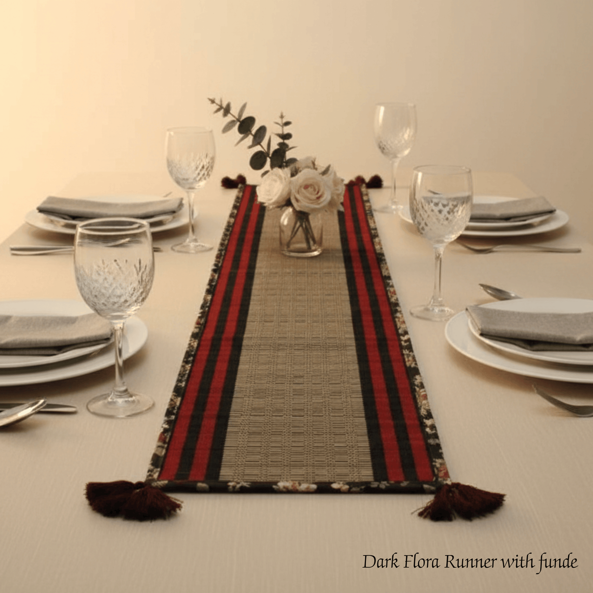 After Wait | Bamboo Table Runner – Floral Canvas Edge with Red Funde
